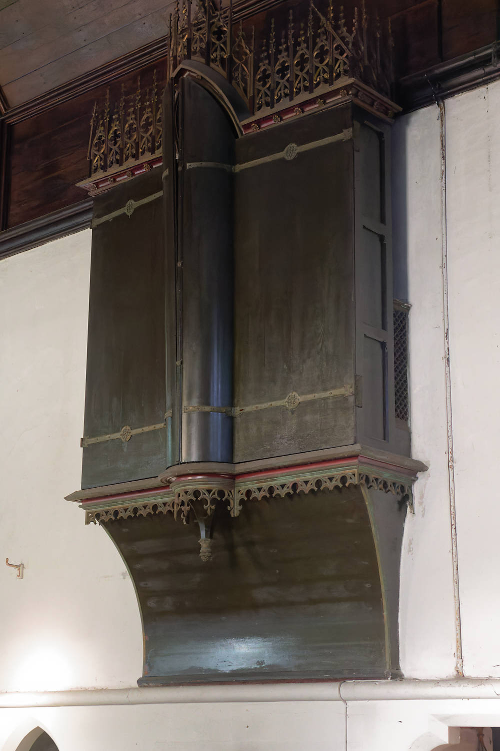 Considering the long period of neglect the building has endured, it is striking that St Andrew the Less houses an exceptional, Grade I listed Victorian pipe organ. The instrument was the gift of Sir John Sutton (1820–1873), a benefactor and scholar of the organ. In 1863, Sutton commissioned Hill & Son to build the organ and engaged William Butterfield, the leading Gothic Revival architect, to design its oak case.
